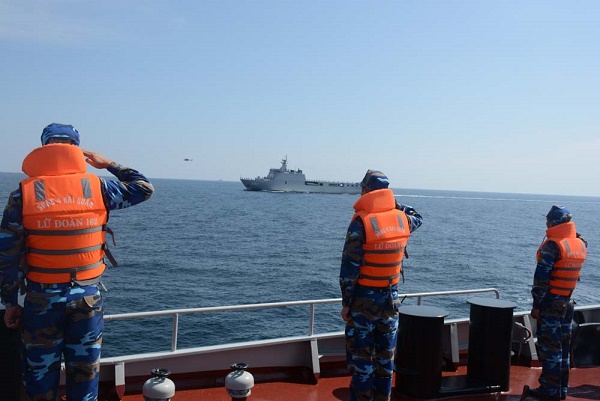 Sĩ quan chỉ huy Tàu 011 Đinh Tiên Hoàng chỉ huy tàu nhổ neo tới vị trí tập kết, chuẩn bị diễn tập Chương tr&i...