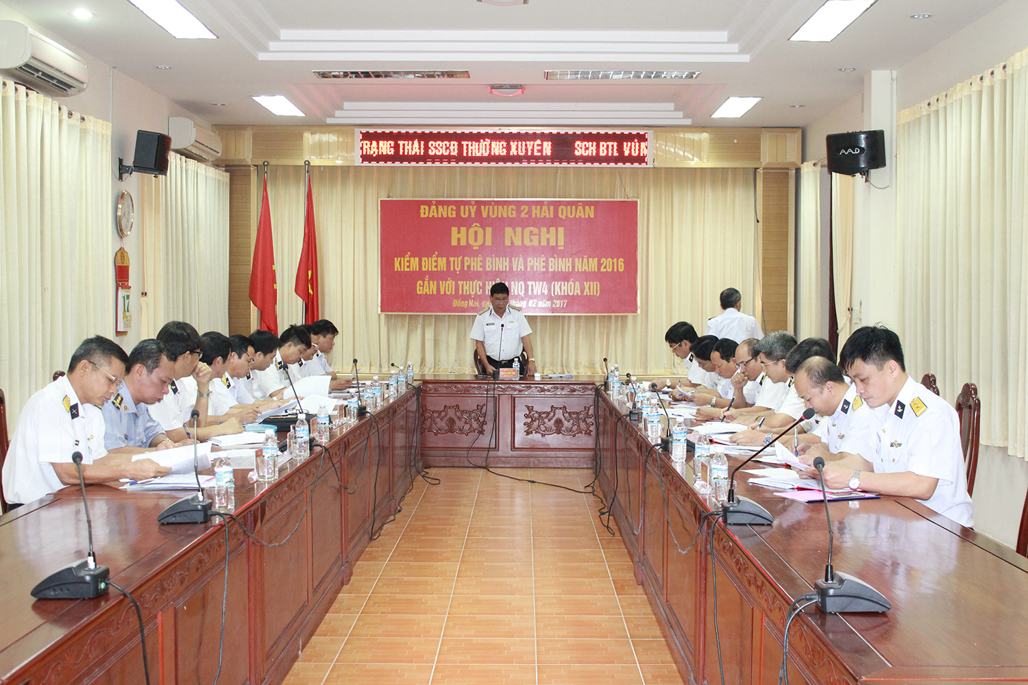Quang cảnh hội nghị Năm 2016, Đảng ủy Vùng 2 thường xuyên quán triệt, nắm vững quan điểm, đường lối của Đảng, chính s&aacu...