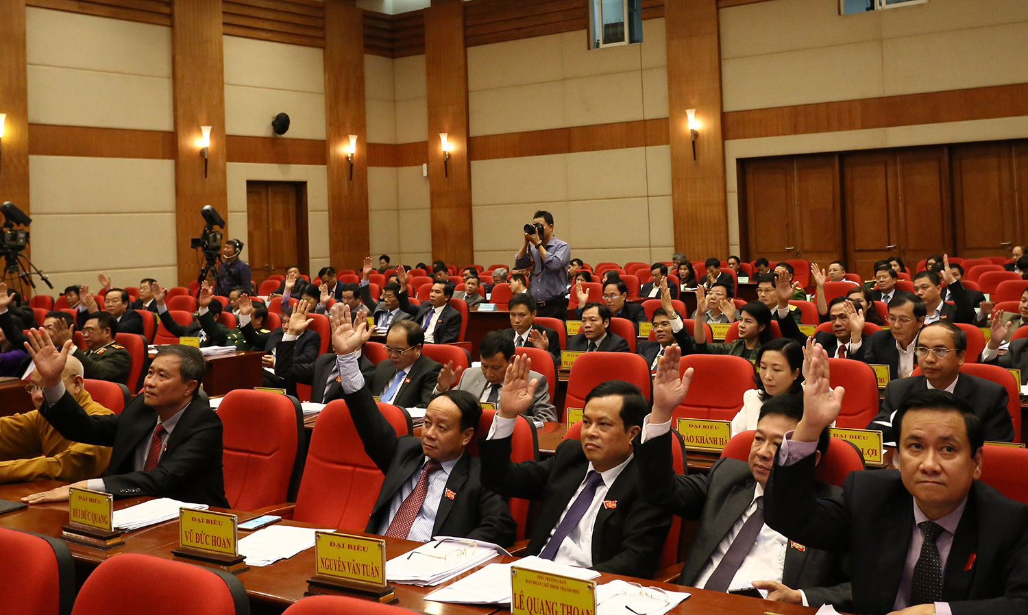 Các đại biểu biểu quyết thông qua nghị quyết Sau 3 ngày làm việc khẩn trương, nghiêm túc, kỳ họp đã th...