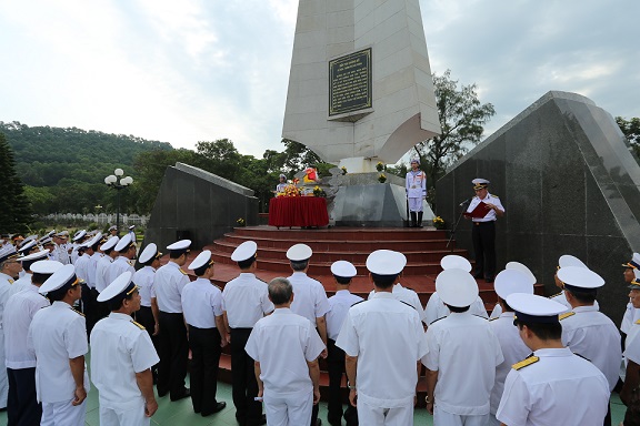 Chuẩn Đô đốc Phạm Văn Vững, Chủ nhiệm Chính trị Hải quân đọc Diễn văn tưởng niệm tại Bia Di tích Bến K15 Trong giai đoạn 19...
