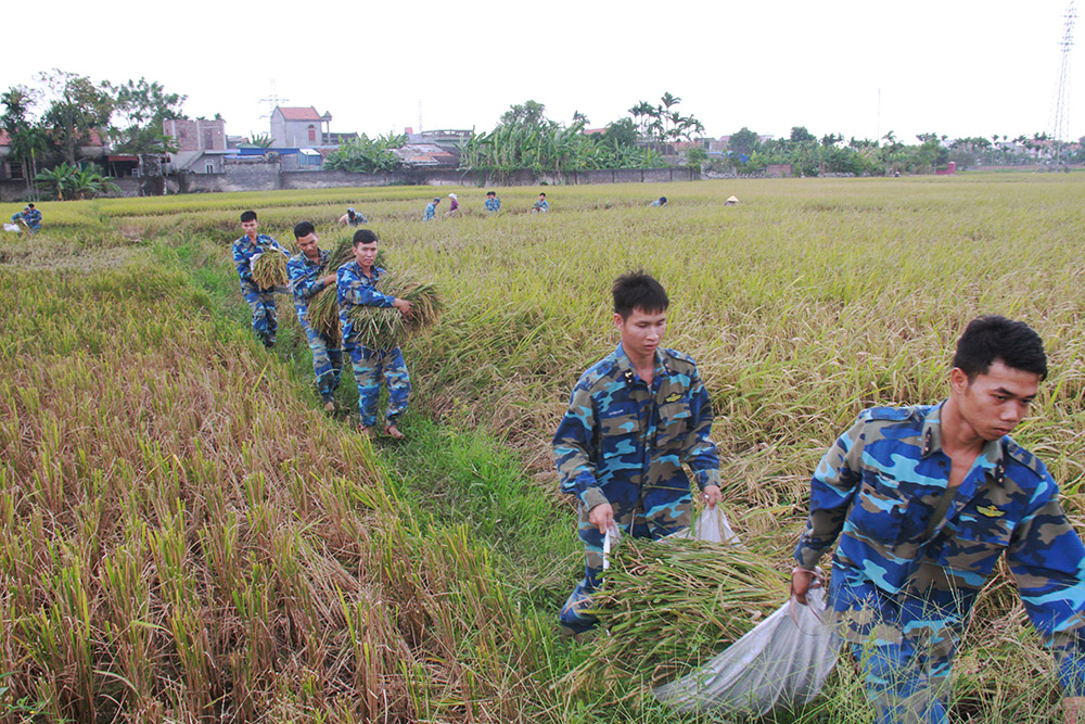 Hơn 1.000 cán bộ, chiến sĩ Hải quân giúp nhân dân thu hoạch lúa trước bão số 7