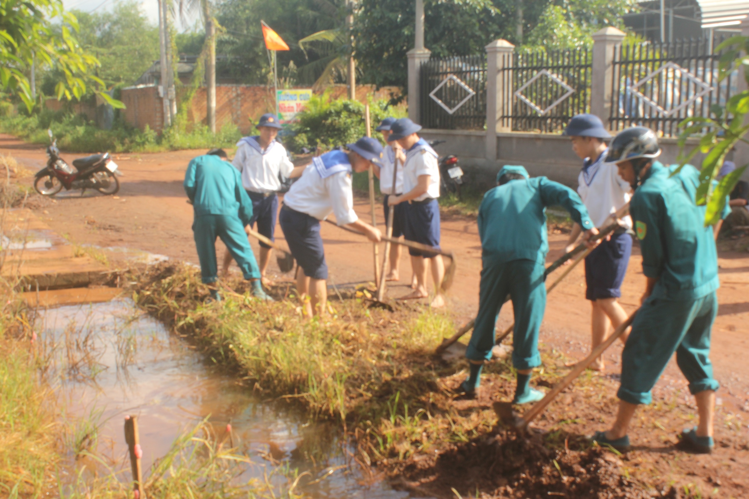 Giúp dân xã Hiệp Hòa dọn vệ sinh đường liên thôn Lực lượng này đã tổ chức khơi thông 3km c...