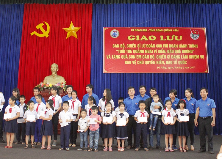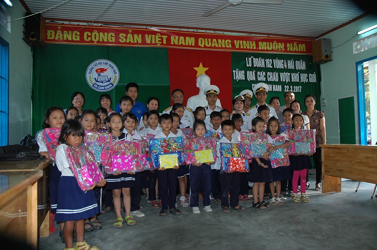 Đoàn cơ sở Lữ đoàn 162 tặng quà cho các cháu học sinh trường Tiểu học Cam Thành Nam Đoàn đã t...