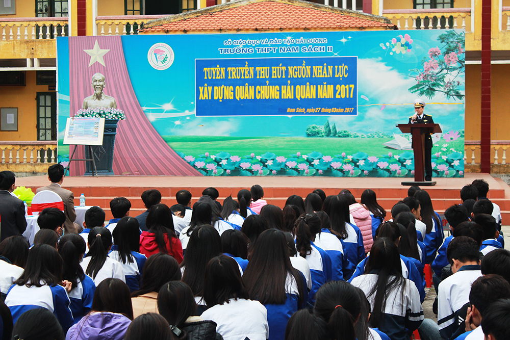 Quang cảnh buổi tuyên truyền tại Trường THPT Nam Sách 2 Buổi tuyên truyền tập trung vào các nội dung: Biển, đảo Việt...
