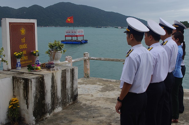 Thủ trưởng Hải đoàn 129 thăm hỏi các ngư dân Trước đó, vào 7 giờ 10 phút ngày 14-3, tàu thu mua thuỷ, hải sản BTh 97409 TS do ông Phạm Thướng, sinh n...