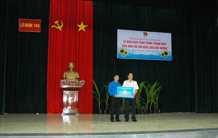 Lãnh đạo Tỉnh đoàn Bến Tre trao tượng trưng 1.000 cây dừa cho quân, dân huyện đảo Trường Sa Công trình t...