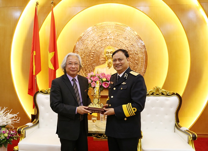 Quang cảnh buổi làm việc Phát biểu tại buổi làm việc, Phó Đô đốc Đinh Gia Thật cảm ơn tình cảm của cá...