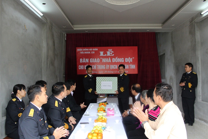 Thủ trưởng Hải đoàn 128 tặng quà cho gia đình đồng chí Lưu Văn Tĩnh Gia đình đồng chí Tĩnh có ho&agr...