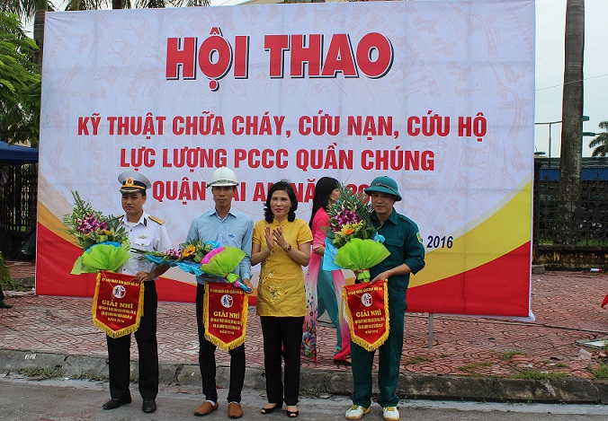 Nội dung thi đội hình phối hợp chạy 3x100m cứu người, cứu tài sản và dập tắt phuy xăng cháy Tham gia Hội thao có 12 đội khối doanh nghiệp và 8 đội kh...