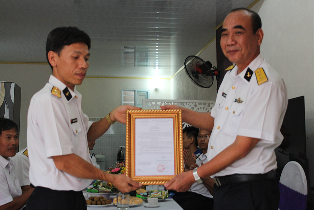 Thượng tá Đặng Ngọc Minh, Phó Chính ủy Đoàn Đo đạc Biên vẽ hải đồ và Nghiên cứu biển trao quyết định nh...