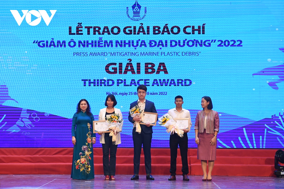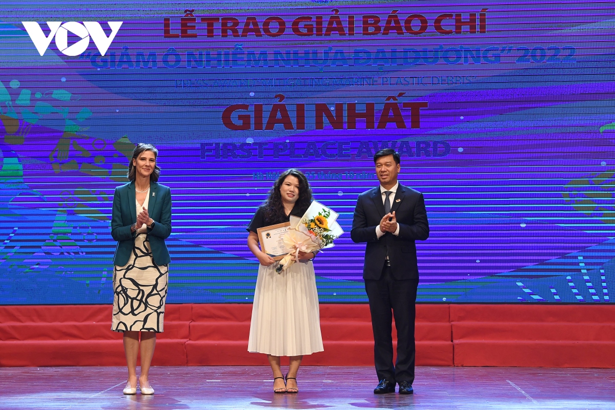 Giải nhất Giải báo chí “Giảm ô nhiễm nhựa đại dương” 2022 được trao cho nhóm tác giả Đỗ Thị Hòa - Phạm Ngọc Phức - VTV24, Đài Truyền hình Việt Nam với phóng sự “Cuộc chiến” rác thải nhựa”