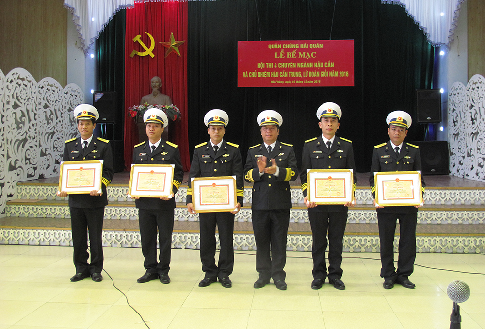 Chiều 19-12, tại Hải Phòng, Quân chủng Hải quân tổ chức Lễ Bế mạc Hội thi 4 chuyên ngành hậu cần và Chủ nhiệm hậu cần (CNHC) cấp trung, lữ đoàn giỏi năm 2016. Chuẩn Đô đốc Nguyễn Trọng Bình, Phó Tư lệnh Hải quân dự và chủ trì buổi bế mạc.