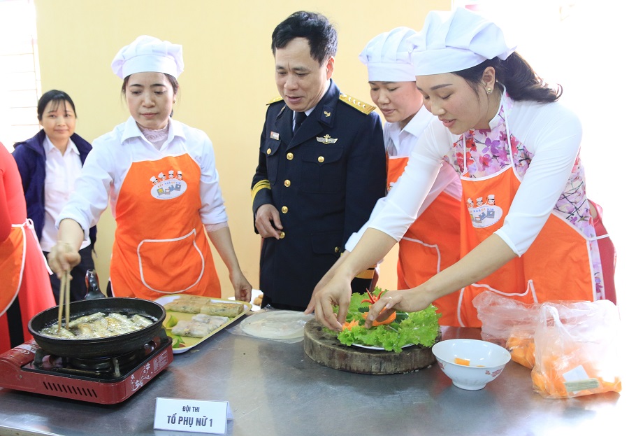 Ngay sau lễ mít tinh, toàn thể phụ nữ Trung tâm 47 tổ chức thi nấu ăn. 5 đội thi đến từ 5 tổ phụ nữ đã tham gia bốc thăm lựa chọn món ăn để đội mình chế biến. Trong vòng 40 phút, các đội đã khéo léo, sáng tạo chế biến được những món ăn ngon, giàu chất dinh dưỡng và đẹp mắt.