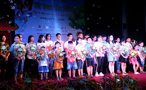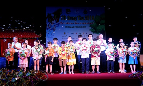 Các đại biểu tặng quà Trung thu cho các cháu tại chương trình
