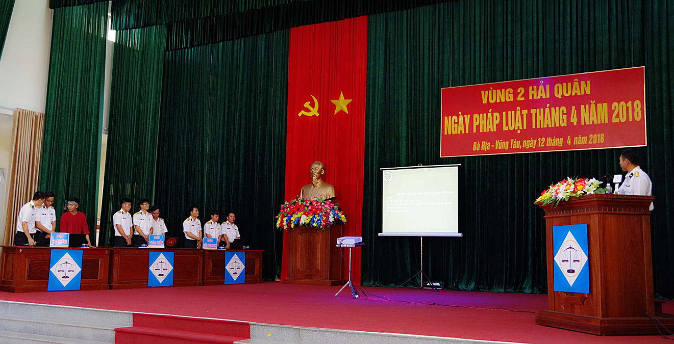 Ngày 12-4, tại Căn cứ Long Sơn, TP. Vũng Tàu, Vùng 2 Hải quân tổ chức sinh hoạt Ngày pháp luật tháng 4 bằng hình thức sân khấu hóa. Đây là buổi làm trước để các đơn vị trong Vùng rút kinh nghiệm tiến hành tổ chức ở đơn vị mình. Tham gia buổi sinh hoạt có hơn 500 cán bộ, chiến sĩ từ các cơ quan, đơn vị thuộc Vùng.
