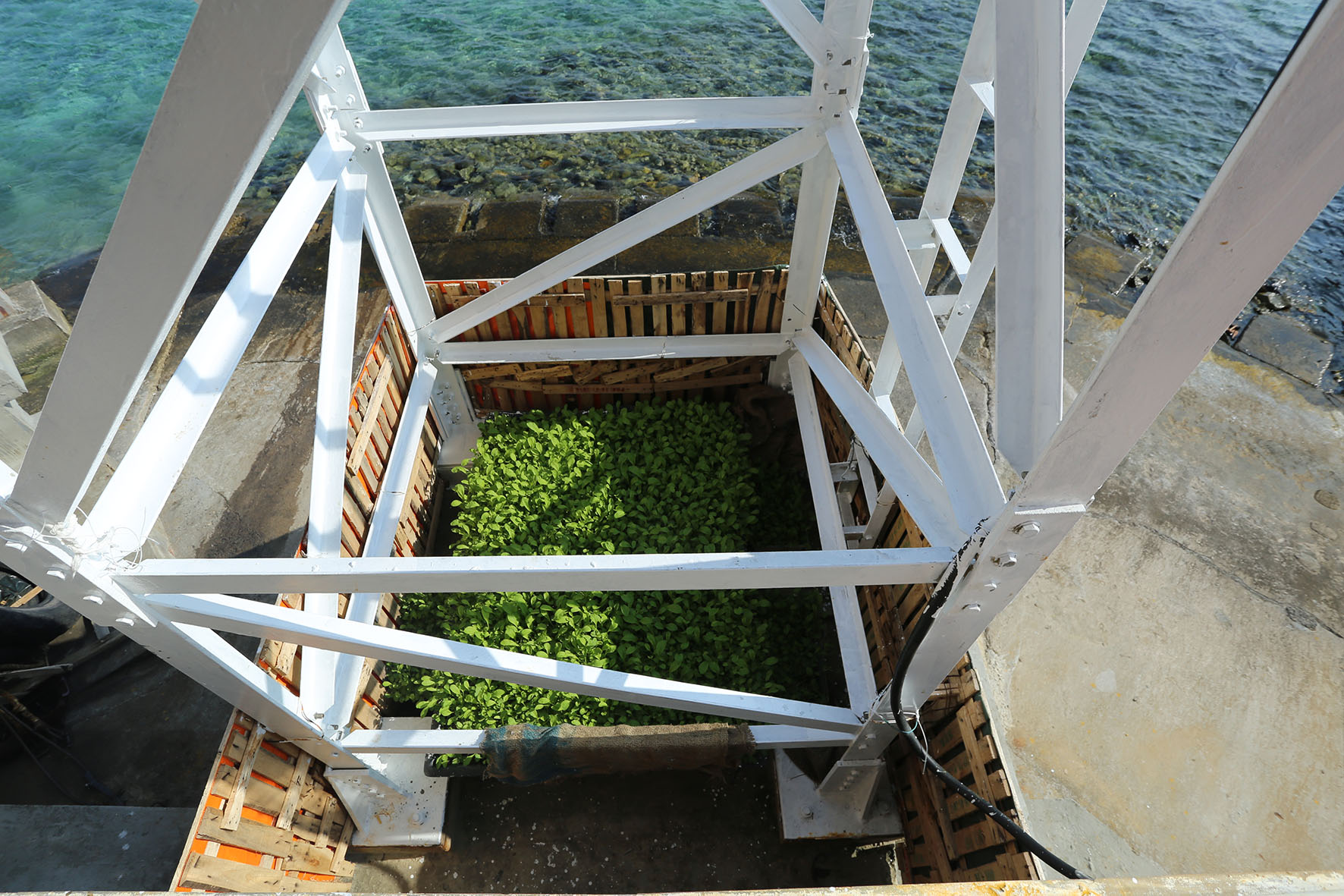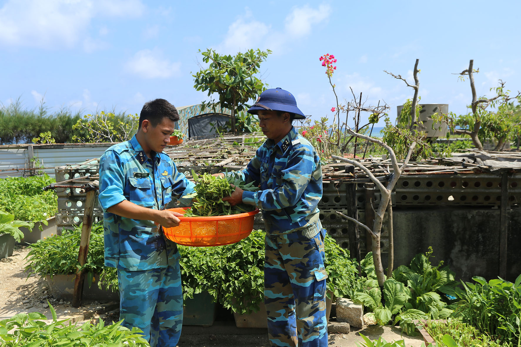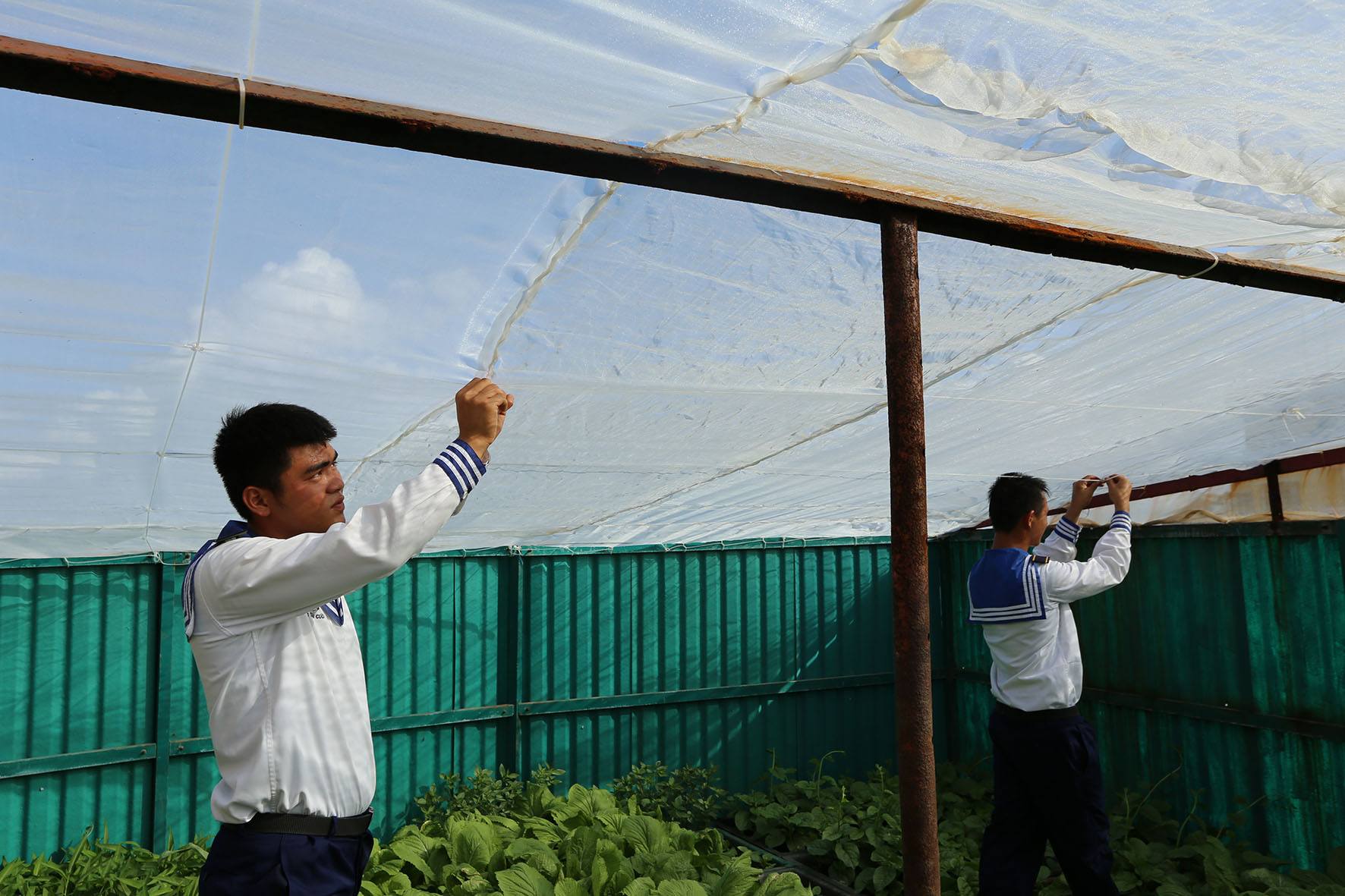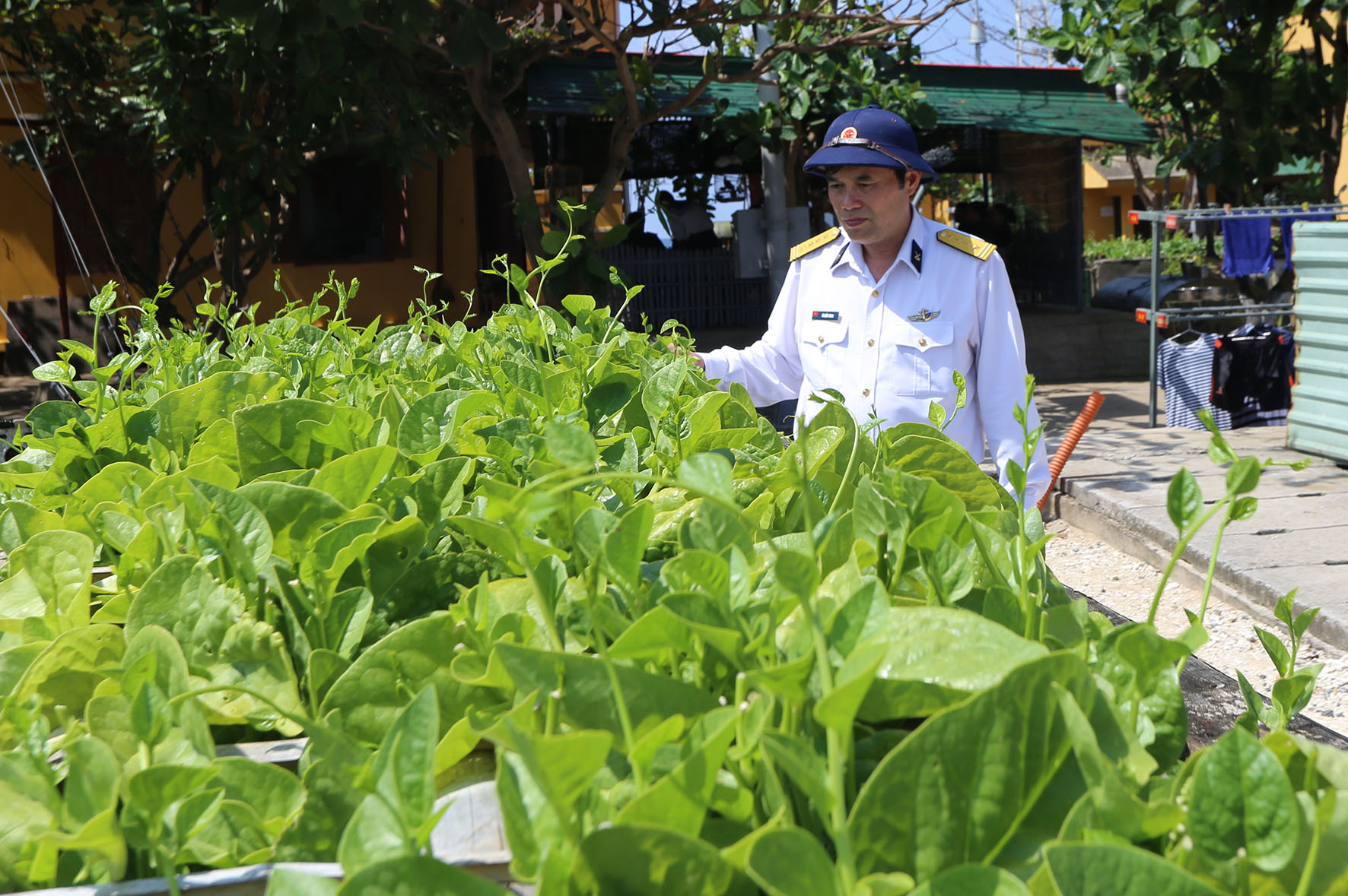 Bộ đội đảo Đá Tây che chắn vườn rau của đảo tránh hơi nước biển ngấm vào rau