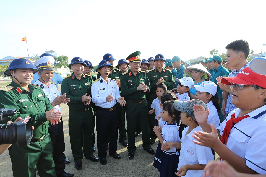 Quân dân thị trấn Trường Sa đón đoàn công tác của Bộ Quốc phòng ra thăm đảo