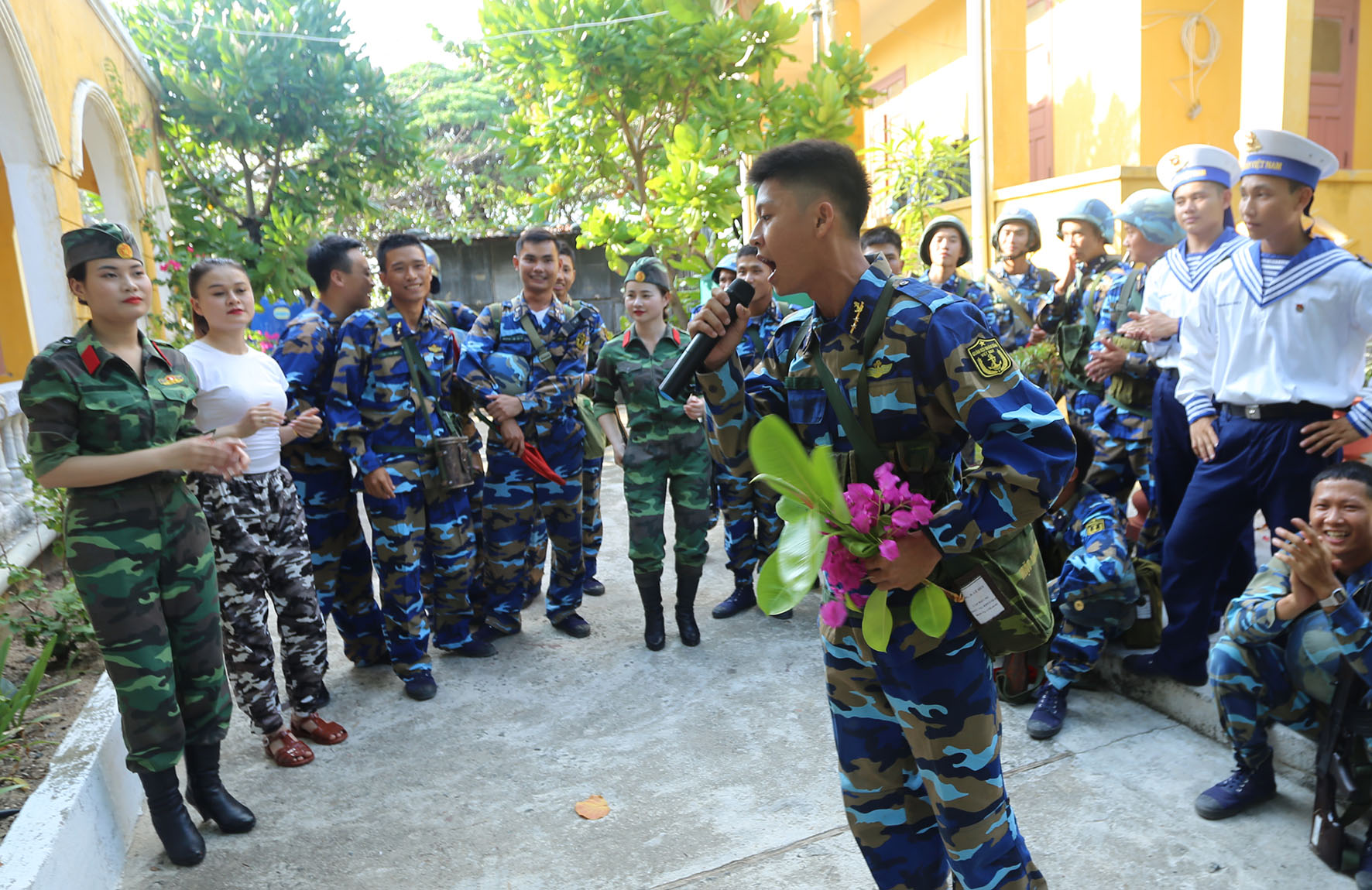 Phút giải lao sau giờ huấn luyện của chiến sĩ trẻ đảo Sinh Tồn