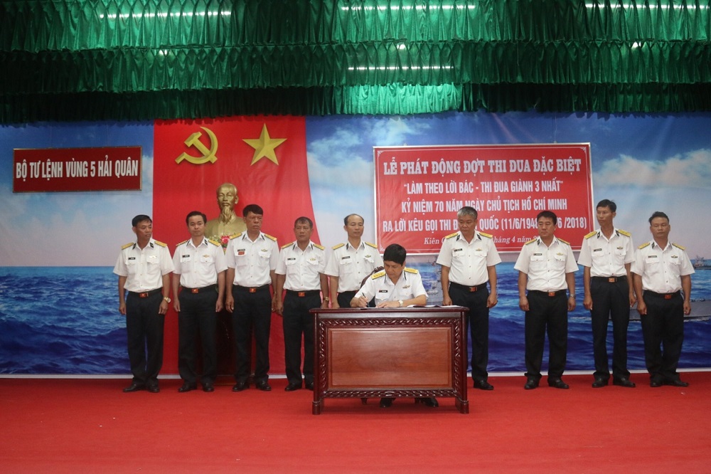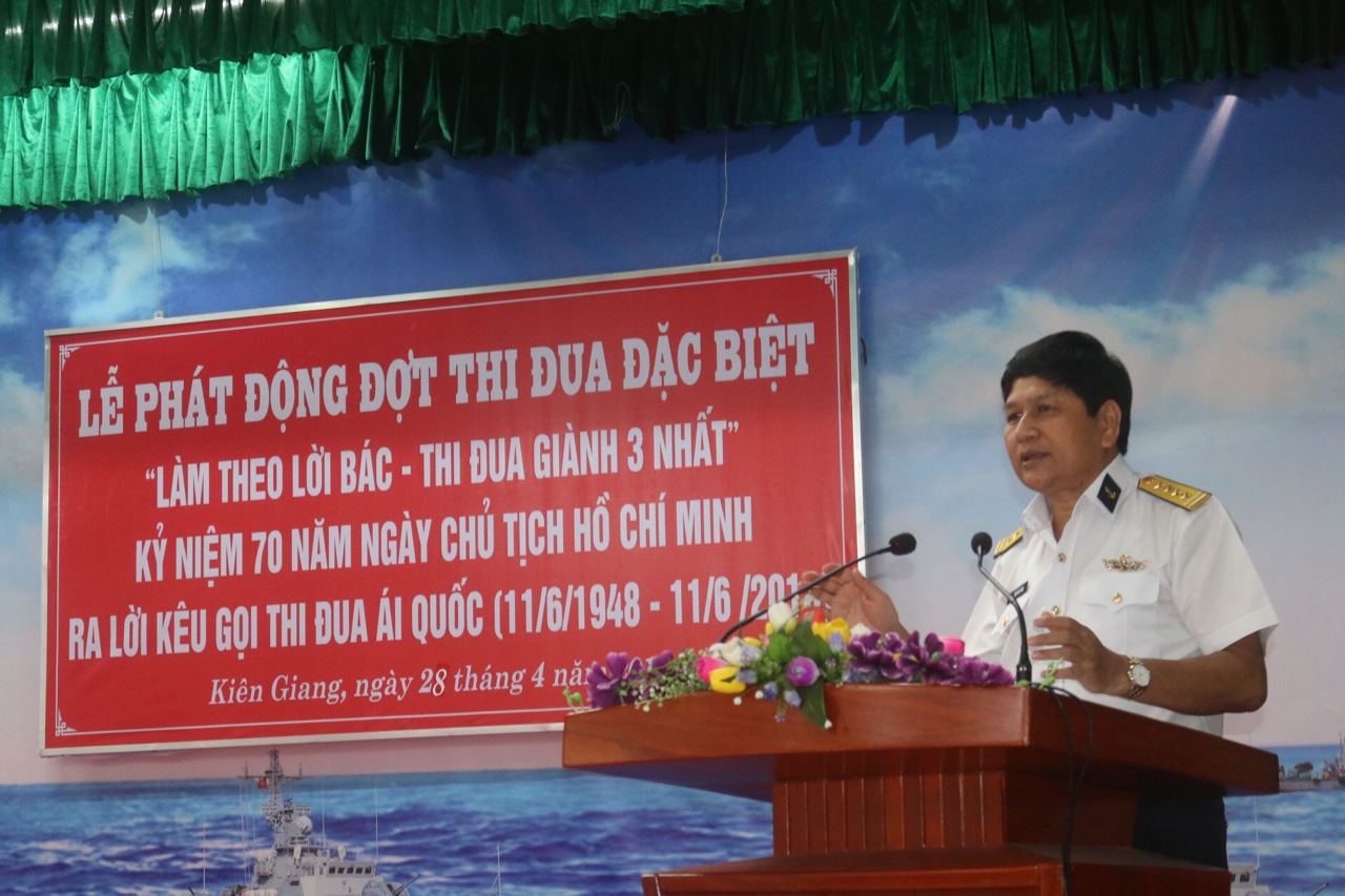 Sáng 28-4, tại Kiên Giang, Vùng 5 Hải quân tổ chức phát động đợt thi đua đặc biệt kỷ niệm 70 năm Ngày Bác Hồ ra Lời kêu gọi thi đua ái quốc (11-6-1948 – 11-6-2018). Đại tá Ngô Văn Thuân, Bí thư Đảng ủy, Chính ủy Vùng, Chủ tịch Hội đồng thi đua khen thưởng chủ trì buổi lễ. Dự buổi lễ có gần 200 cán bộ, chiến sĩ trong toàn Vùng.