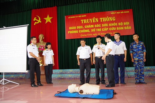 Các bác sĩ của Viện Y học Hải quân cũng đã trao đổi, giải đáp các câu hỏi của cán bộ, chiến sĩ về các bệnh lý có liên quan đồng thời giới thiệu các nội dung, biện pháp cơ bản về phòng chống, xử trí cấp cứu ban đầu ngừng tim, ngừng hô hấp một số bệnh thường gặp như: Say nắng, say nóng, điện giật, đuối nước, rắn độc cắn, ong đốt…