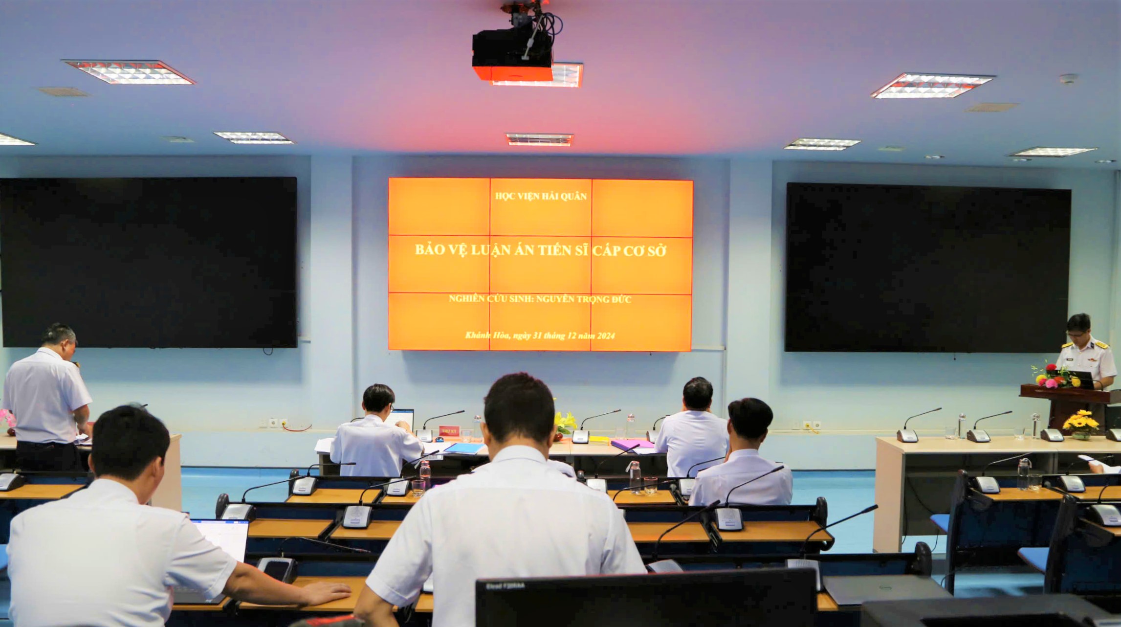 Ngày 30 và 31/12/2024, tại TP. Nha Trang, tỉnh Khánh Hòa, Học viện Hải quân tổ chức bảo vệ luận án tiến sĩ cấp cơ sở cho 4 nghiên cứu sinh (NCS) các lớp NCS-14, NCS-15 chuyên ngành chiến thuật.