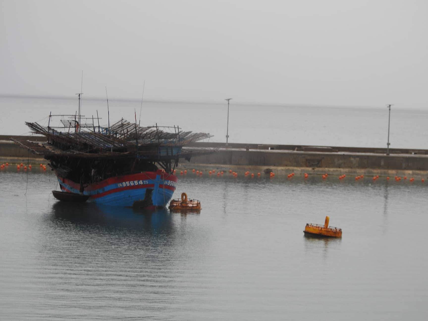 Tàu cá QNa 95654 TS neo đậu an toàn tại Âu tàu thị trấn Trường Sa