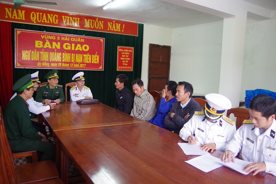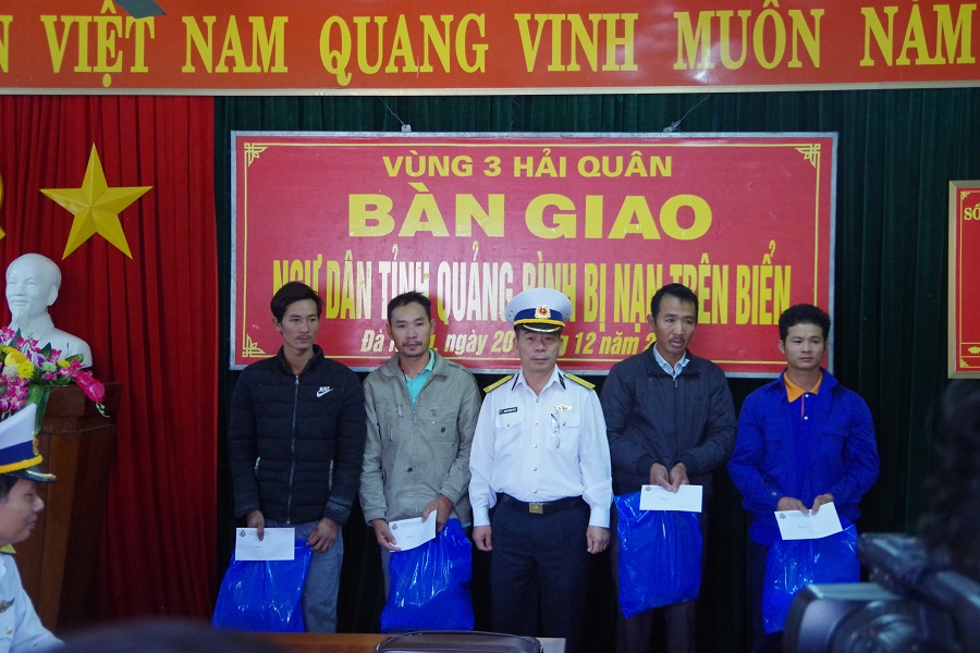 8 giờ ngày 20-12, Tàu 364 đã đưa 4 ngư dân cập Cảng Vùng 3 Hải quân, sức khỏe 4 ngư dân đã bình thường. Tại cảng Vùng 3, thủ trưởng Vùng đã gặp gỡ, động viên, trao quà cho các ngư dân và tổ chức bàn giao các ngư dân tàu cá QB 98436 TS cho Bộ đội Biên phòng thành phố Đà Nẵng đúng thủ tục quy định.