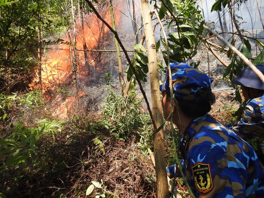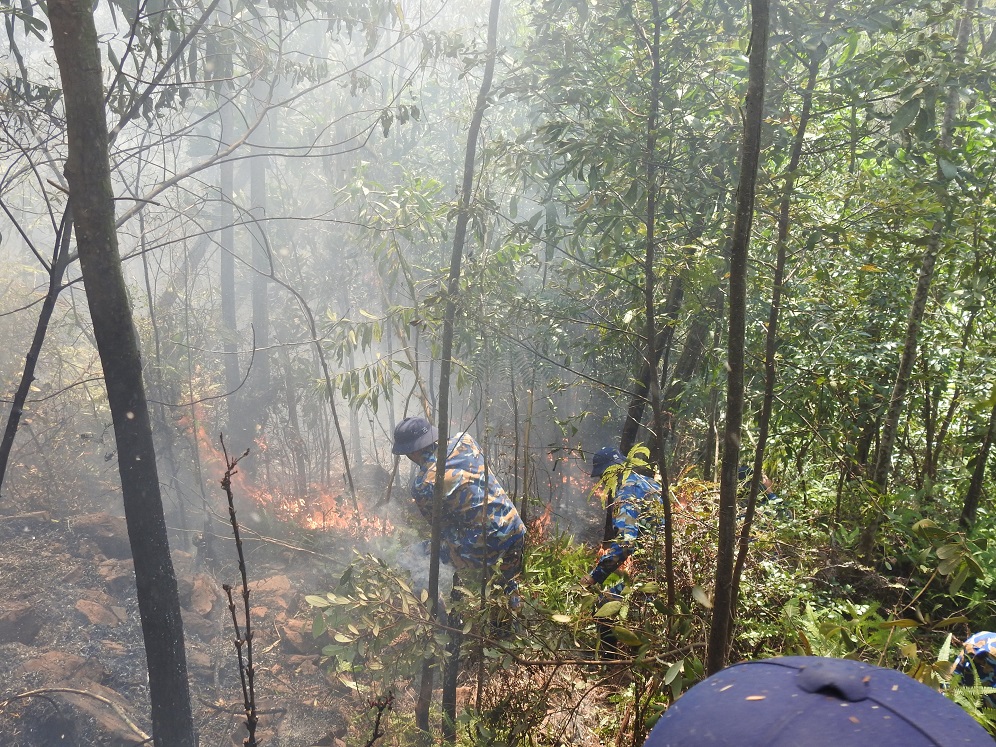 Mặc dù khu vực xảy ra cháy có nhiều lá khô, địa bàn tiếp cận khó khăn, song cán bộ, chiến sĩ đã khoanh vùng, dập lửa, khống chế hoàn toàn đám cháy.