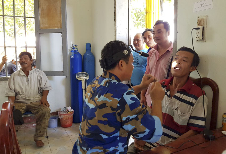 Sau khi ổn định nơi ở, quân y đảo tổ chức kiểm tra sức khỏe cho 43 ngư dân
