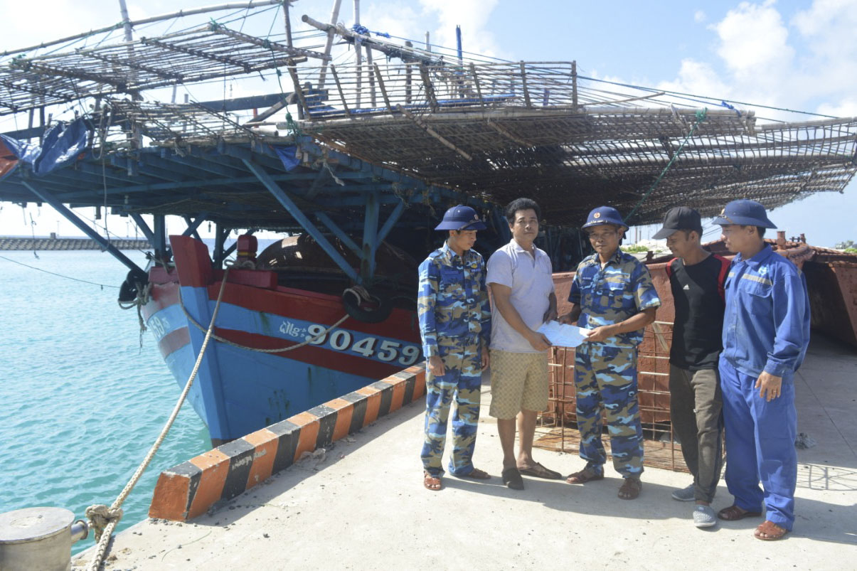 Cán bộ, nhân viên Đội dịch vụ Âu tàu nghề cá Sinh Tồn hỗ trợ ngư dân Tàu QNg 95410 TS