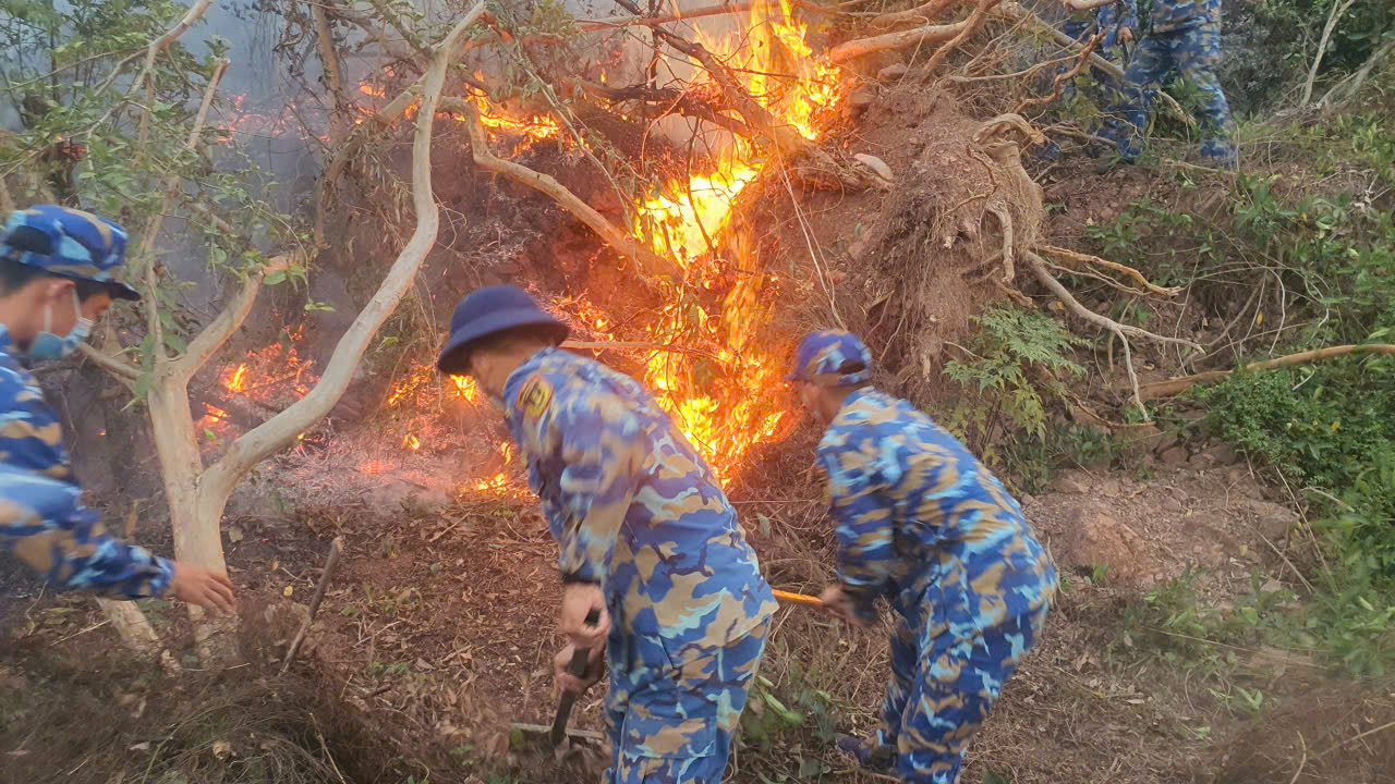 Do thời tiết khô hanh, địa hình núi dốc, đám cháy lớn đã gây khó khăn cho việc chữa cháy. Cán bộ, chiến sĩ Lữ đoàn 126 đã phối hợp với các lực lượng khác tiếp cận đám cháy, phát đường băng, tạo vành đai ngăn lửa, khẩn trương dập tắt đám cháy.