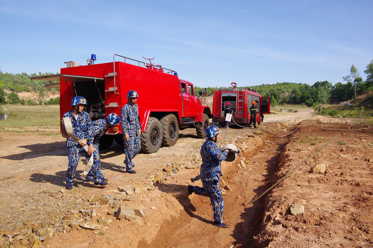 Tình huống giả định là một đám cháy rừng do người dân phát đốt dọn thực bì để trồng rừng vô ý gây cháy, đám cháy lan nhanh. Chính quyền địa phương đã sử dụng người và phương tiện tại chỗ để dập lửa nhưng do thời tiết hanh khô, gió thổi mạnh nên đám cháy đã lan nhanh sang khu vực rừng phòng hộ. Nhận được đề nghị của UBND thị xã Quảng yên, bộ phận chữa cháy của Lữ đoàn 147 đã nhanh chóng cơ động đến hiện trường cùng các lực lượng khác tham gia chữa cháy. Sau gần một giờ, đám cháy giả định đã được khống chế hoàn toàn, người và phương tiện an toàn. Buổi diễn tập thành công tốt đẹp.