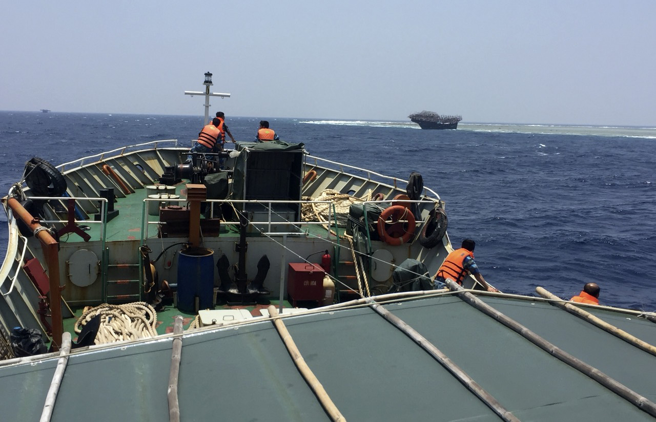 Hiện tại, Tàu 741 phối hợp cùng với ngư dân tìm phương án kéo Tàu QNg 95834 TS ra khỏi bãi cạn.