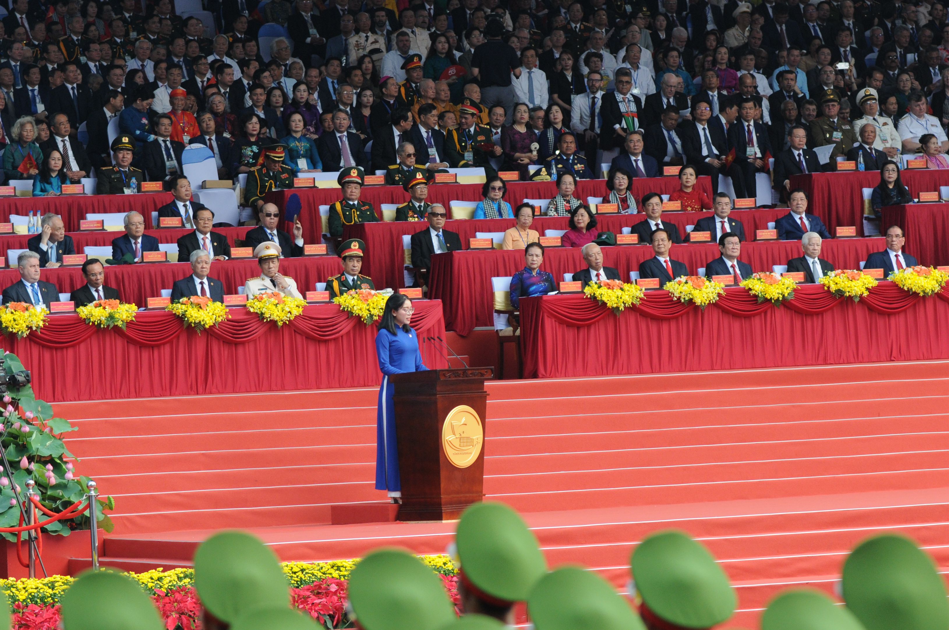 Tổng Bí thư Tô Lâm đọc diễn văn kỷ niệm 50 năm thống nhất đất nước; tiếp theo phát biểu của đại diện cựu chiến binh, của đại diện thế hệ trẻ Việt Nam.