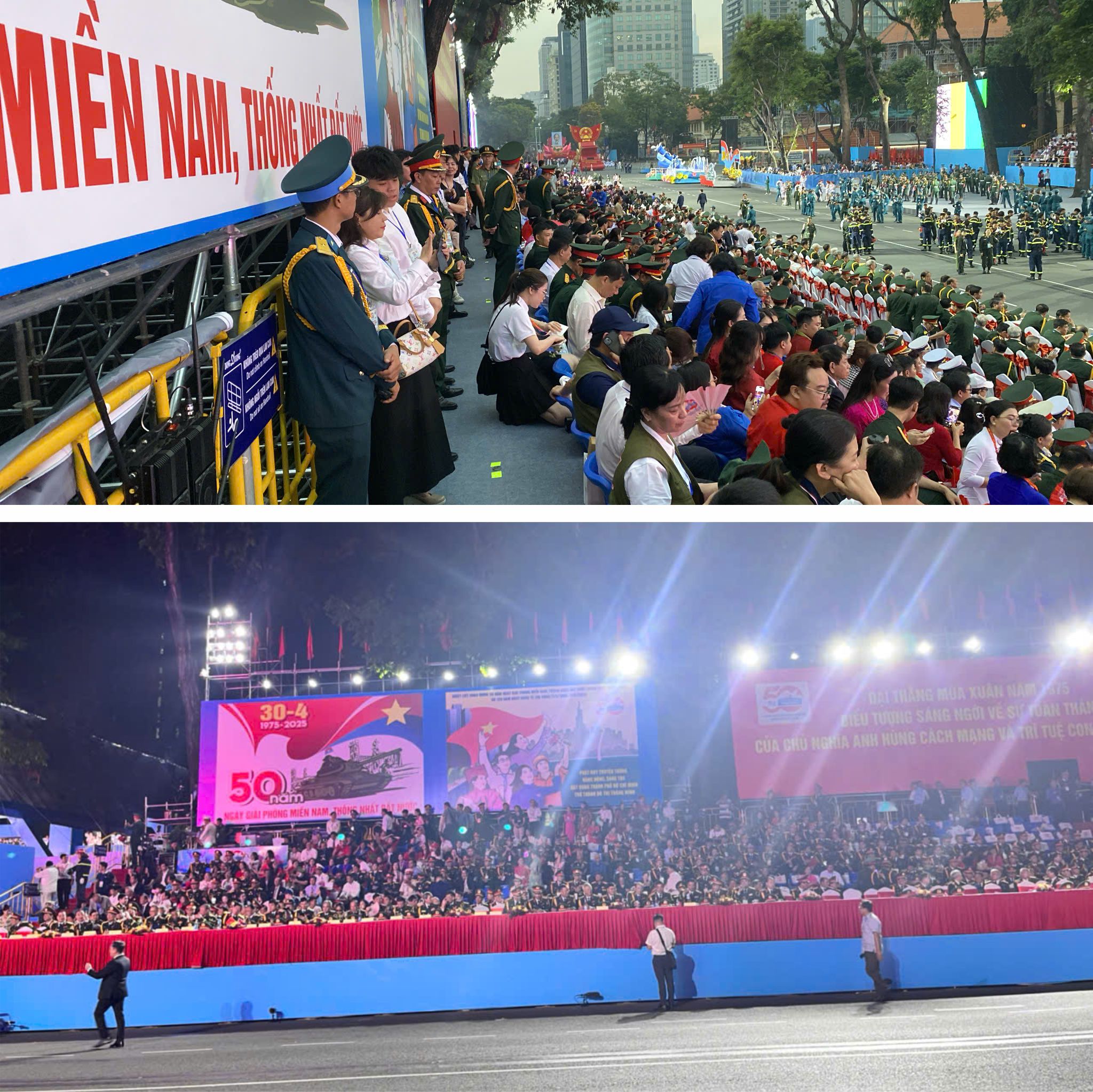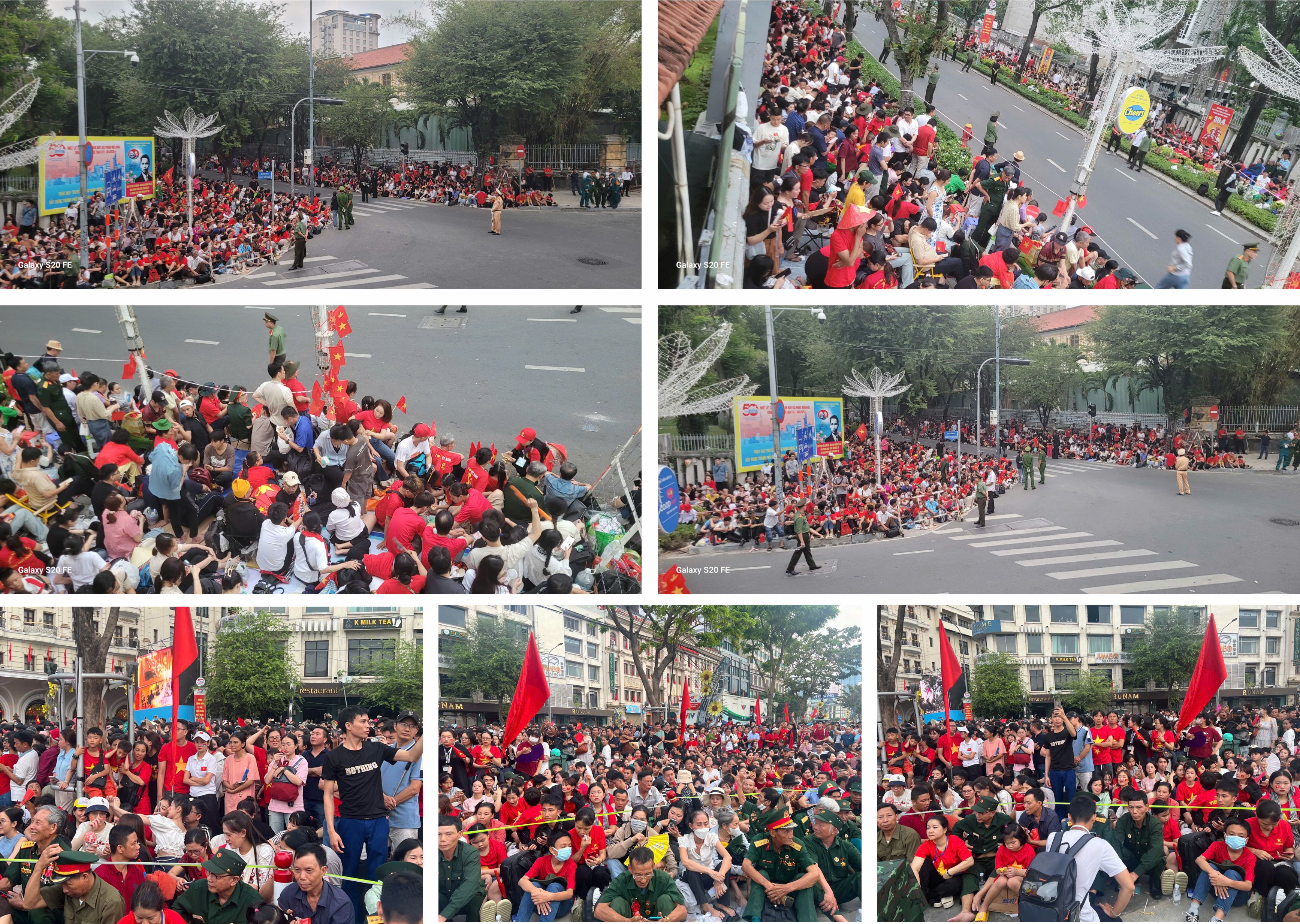 Dù trời đêm thời tiết oi bức và nhiều đoạn phải ngồi trực tiếp trên vỉa hè, lòng người vẫn háo hức, phấn khởi, háo hức đón chờ sự kiện 50 năm chỉ diễn ra 1 lần. Khí thế quần chúng sục sôi, tựa như "triều dâng thác đổ", như bước chân thần tốc của những cánh quân tiến về giải phóng Sài Gòn cách đây tròn nửa thế kỷ...