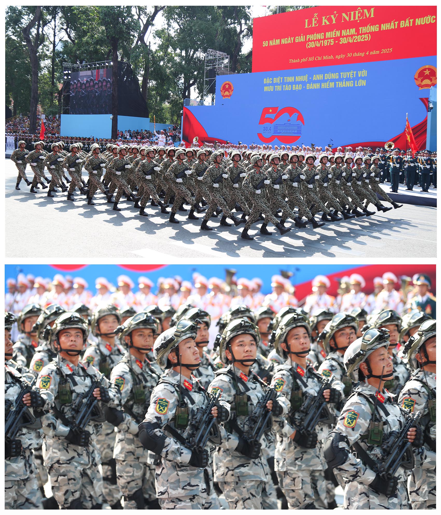 Tiến qua lễ đài là khối chiến sĩ Đặc công và khối chiến sĩ Đặc nhiệm dù