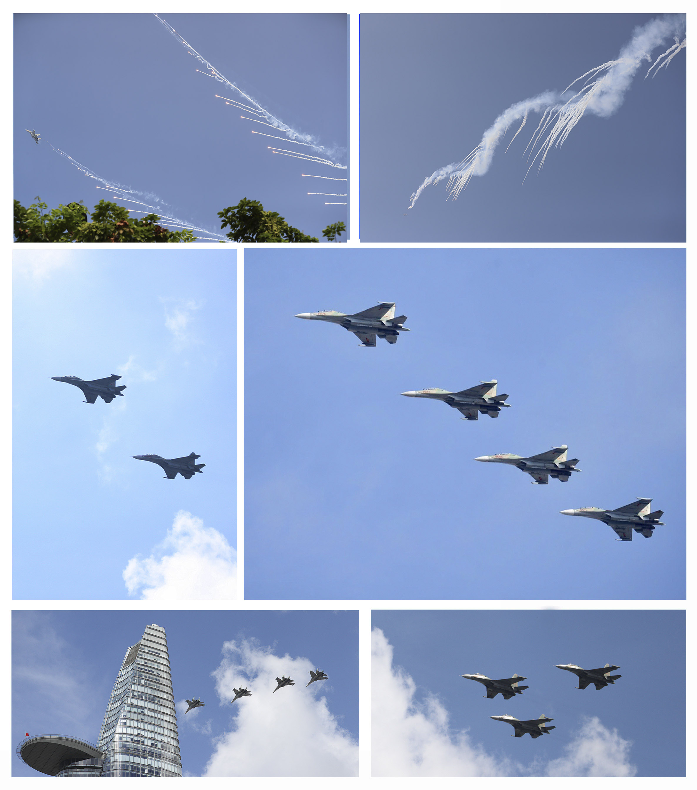 Biên đội máy bay tiêm kích Su-30MK2 bay biểu diễn trên bầu trời TP. Hồ Chí Minh