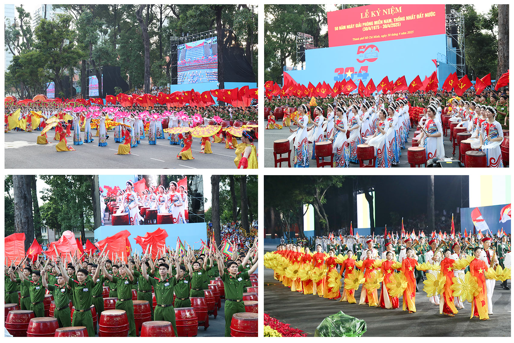 HQ Online: Sáng 30/4, hòa trong không khí tưng bừng, phấn khởi của cả nước, tại trung tâm TP. Hồ Chí Minh, lễ diễu binh, diễu hành trọng thể kỷ niệm 50 năm Ngày giải phóng miền Nam, thống nhất đất nước (30/4/1975 – 30/4/2025) chính thức được tổ chức với quy mô lớn, khí thế hào hùng và xúc động, đúng với tầm vóc của sự kiện.