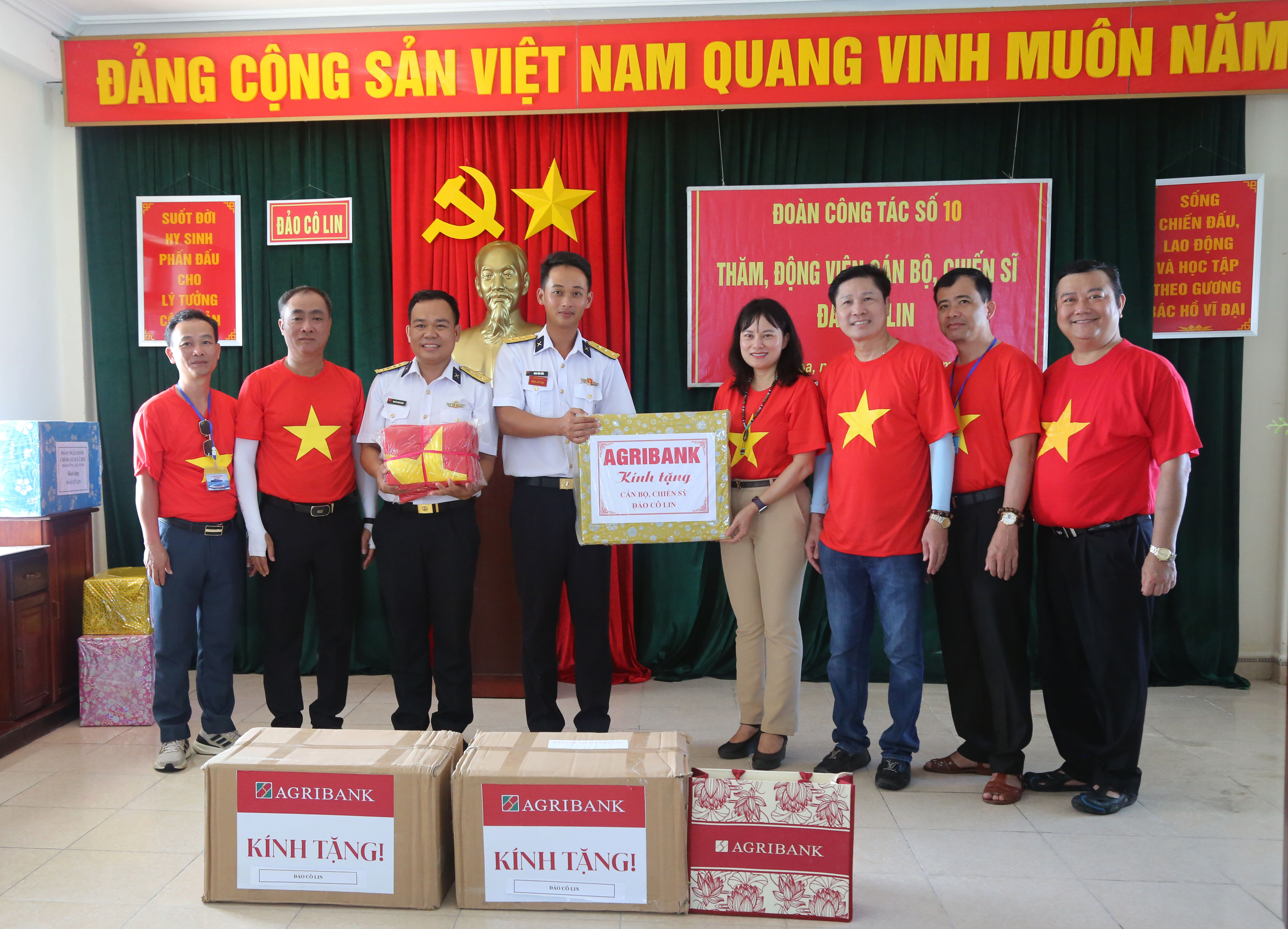 Ngoài thăm hỏi, động viên bộ đội, đoàn cũng mang nhiều phần quà thiết thực tặng nhân dân các xã đảo Sinh Tồn, Trường Sa, Song Tử Tây... Sự gắn bó liên tục giữa Agribank và Trường Sa qua nhiều năm đã được lãnh đạo Quân chủng Hải quân ghi nhận. Theo Chuẩn Đô đốc Đỗ Quốc Ân, Phó Tư lệnh Hải quân, Trưởng đoàn công tác số 10, những công trình, phần quà và chương trình hỗ trợ của Agribank góp phần quan trọng vào việc xây dựng “thế trận lòng dân”, lan tỏa tinh thần yêu nước và đoàn kết dân tộc trong mọi tầng lớp nhân dân.