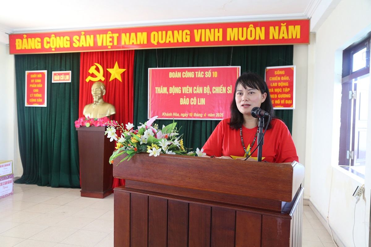 Phát biểu tại buổi làm việc trên đảo Cô Lin, bà Phùng Thị Bình, Phó Tổng giám đốc Agribank chia sẻ: “Chúng tôi luôn tự hào và xem việc sát cánh cùng quân dân Trường Sa là trách nhiệm cũng là tình cảm thiêng liêng. Những hỗ trợ của Agribank tuy khiêm tốn nhưng thể hiện sự tri ân sâu sắc của hàng chục nghìn cán bộ, người lao động trong toàn hệ thống với những người đang ngày đêm gìn giữ chủ quyền biển đảo...”.