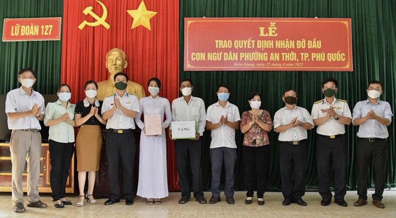 Tháng 4/2022, Lữ đoàn 127, Vùng 5 đã tổ chức lễ trao quyết định nhận đỡ đầu con ngư dân ở phường An Thới, TP. Phú Quốc, tỉnh Kiên Giang. Người được lựa chọn là cháu Trần Ngọc Huyền, con của ngư dân Trần Hạnh, trú tại phường An Thới, TP Phú Quốc. Cháu Huyền có hoàn cảnh gia đình khó khăn nhưng đã nỗ lực vượt khó vươn lên, đạt nhiều thành tích cao trong học tập. Gia đình anh Trần Hạnh hiện có 2 người con đang đi học, kinh tế gia đình chủ yếu dựa vào nghề đi biển, bản thân tuổi đã cao… nên có phần thiếu thốn. Cháu Trần Ngọc Huyền chia sẻ: Khi được biết tin cháu được chọn đỡ đầu, cháu rất vui và xúc động. Cháu sẽ cố gắng học thật tốt để không phụ lòng ba mẹ, phụ lòng các chú bộ đội Hải quân đã hỗ trợ gia đình cháu trong lúc khó khăn này. Còn ông Trần Hạnh thì khẳng định: Mặc dù số tiền không nhiều, nhưng đây cũng là động lực để tôi vươn khơi, bám biển, cố gắng cho con học hành đầy đủ, nên người.