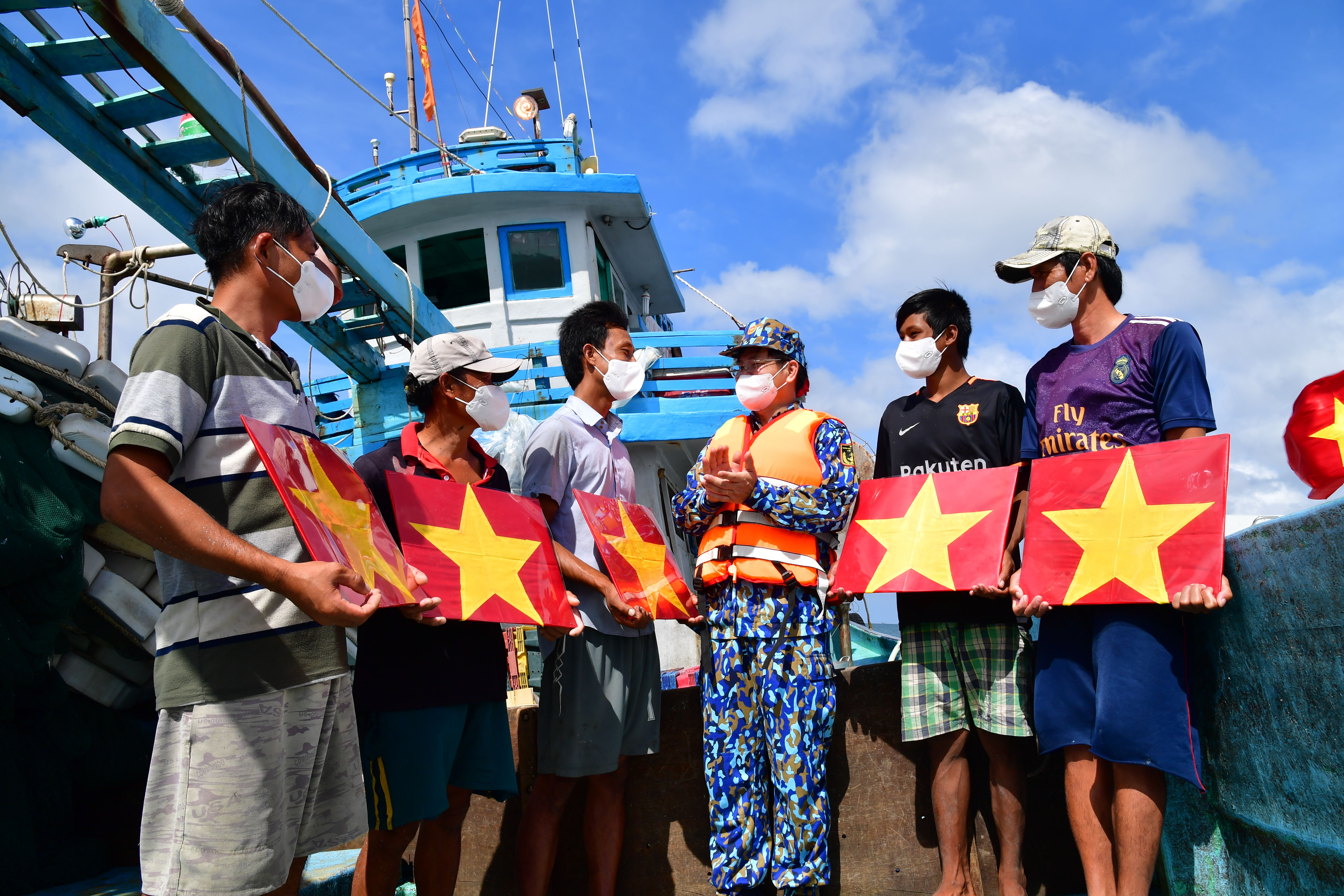 Cán bộ, chiến sĩ Lữ đoàn 127, Vùng 5 Hải quân tặng cờ Tổ quốc cho ngư dân