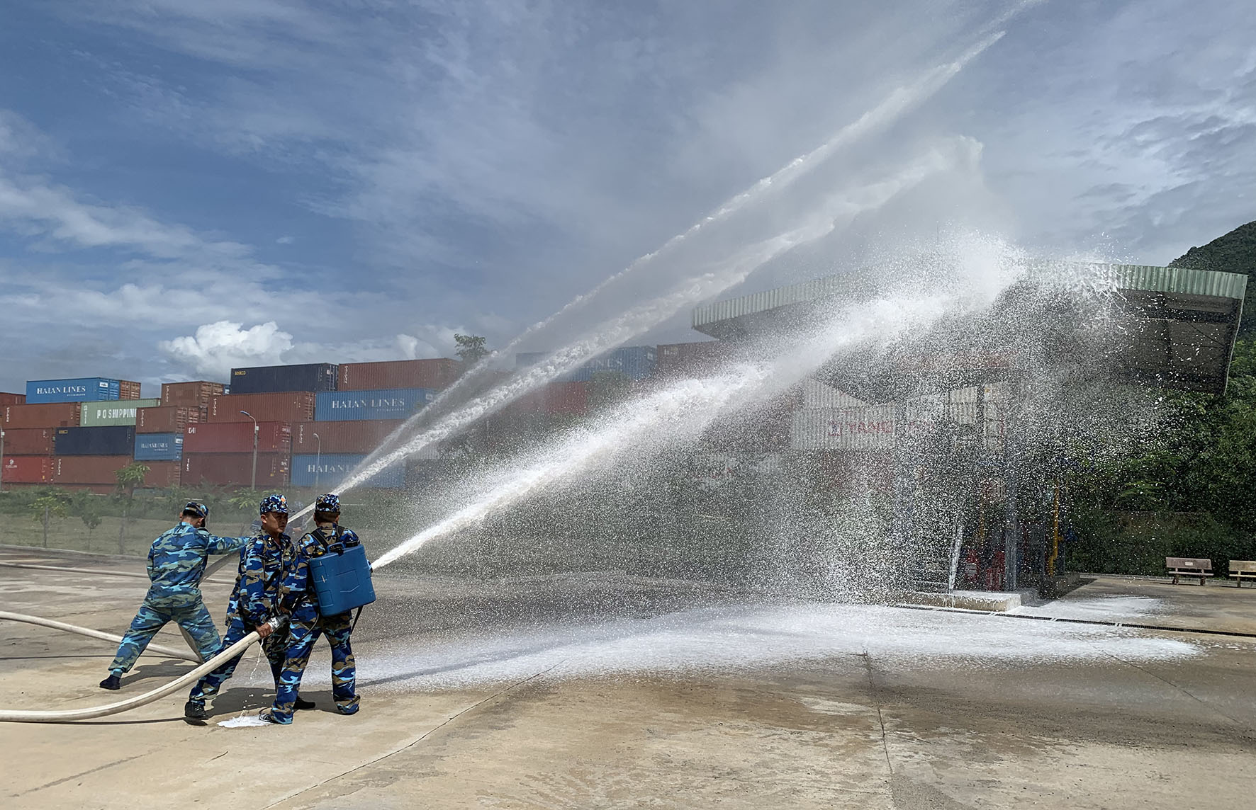 Chúng tôi đến thăm Kho xăng dầu Vùng 3 Hải quân vào một ngày đầu đông, đúng lúc đơn vị đang huấn luyện báo động chữa cháy. Tình huống giả định là tại trạm cấp phát nhiên liệu của Kho xảy ra cháy. Nhận được hiệu lệnh báo động có đám cháy, ngay lập tức, cán bộ, chiến sĩ từ mọi vị trí công tác nhanh chóng cơ động đến khu vực đám cháy để triển khai dập lửa. Tại hiện trường, hành động của cán bộ, chiến sĩ của Kho triển khai chữa cháy nhanh chóng và dứt khoát. Nhờ được huấn luyện thành thục, thường xuyên luyện tập nên cán bộ, nhân viên của Kho đã bình tĩnh, xử trí tình huống xảy ra; thực hiện đúng các bước, các công đoạn chữa cháy. Chỉ trong thời gian ngắn, đám cháy đã được khống chế và dập tắt hoàn toàn.