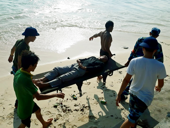 Ông Cường được cán bộ, chiến sĩ đảo Sơn Ca đưa vào Bệnh xá cấp cứu