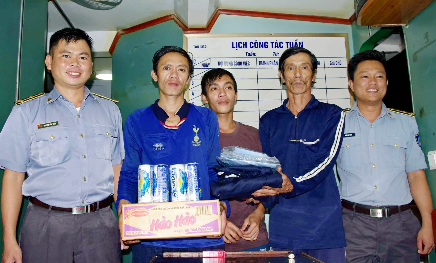 HQ Online-Đồng chí Trần Duy Quân, Thuyền trưởng Tàu KN 402 cho biết: Đến 21 giờ 30 ngày 11-8, cán bộ, nhân viên Tàu KN 402 thuộc Chi đội Kiểm ngư số 4 đã đưa 3 ngư dân về đảo Sơn Ca an toàn.