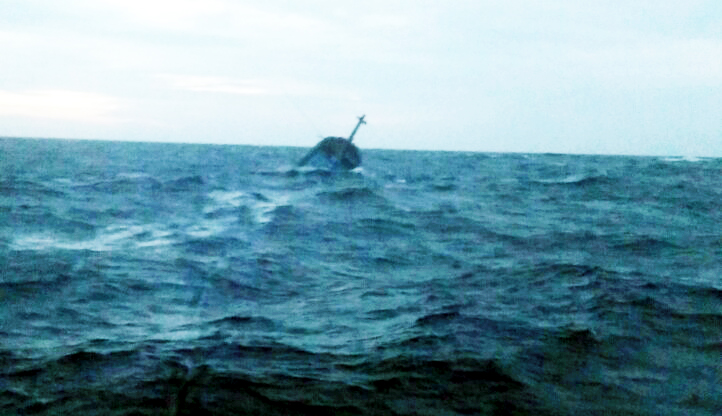 Tàu BĐ 95642 TS đã bị chìm 2/3 thân tàu