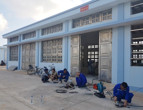 Sáng 14-5, các thợ sửa chữa của Trung tâm đã khắc phục xong, tiến hành lắp ráp, cân chỉnh, thử tải để tàu cá tiếp tục vươn khơi.