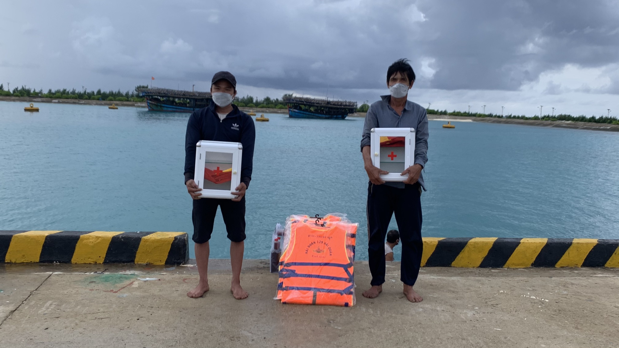Trung tâm Dịch vụ hậu cần-kỹ thuật đảo Sinh Tồn tặng áo phao, cờ Tổ quốc và tủ thuốc y tế cho ngư dân tỉnh Quảng Nam
