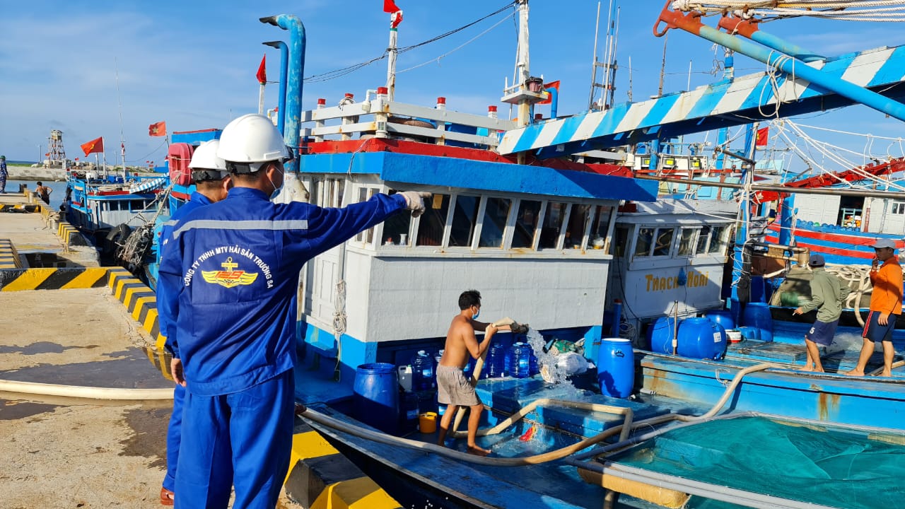Trung tâm Dịch vụ hậu cần-kỹ thuật đảo Trường Sa cấp nước ngọt cho ngư dân