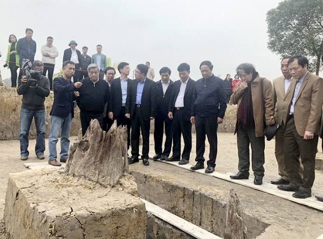Lãnh đạo TP.Hải Phòng và các nhà khoa học tham quan bãi cọc mới được khai quật
